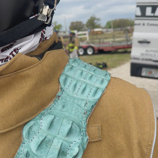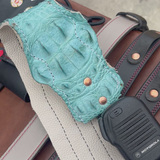 Crafted with the utmost care and attention to detail, this crocodile firefighter radio strap set is sure to impress. Its durable construction and stylish design make it a must-have for any firefighter looking to upgrade their gear. Don't settle for anything less than the best - order your custom handmade crocodile firefighter radio strap set today.